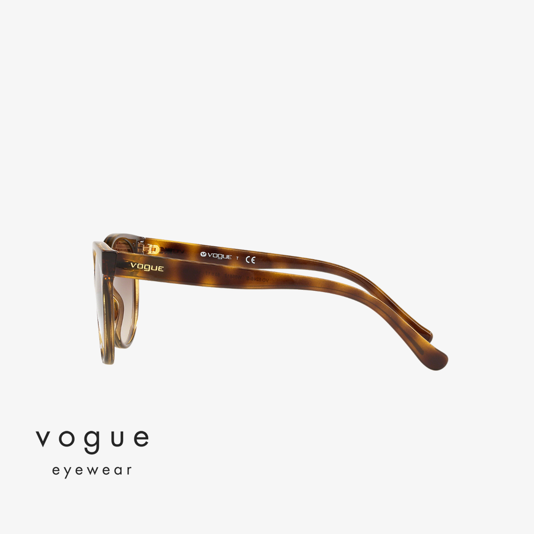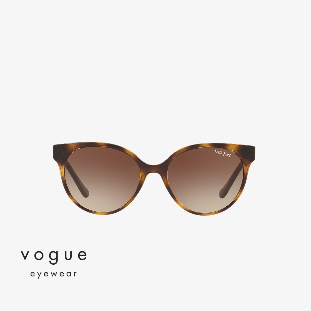 Vogue gjithmonë n’a mahnit me inovacionet që sjell në treg, të tilla janë edhe syzet e diellit dedikuar femrave të cilat janë me formë rrumbullake dhe “cat eye” dhe janë me ngjyrë të kaftë dhe havana. Këto syze janë me dimensione 53 x 17 x 140 mm dhe janë punuar nga polikarbonati.