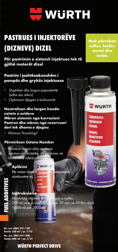 - Për pastrimin e sistemit injektues tek motorët dizel.