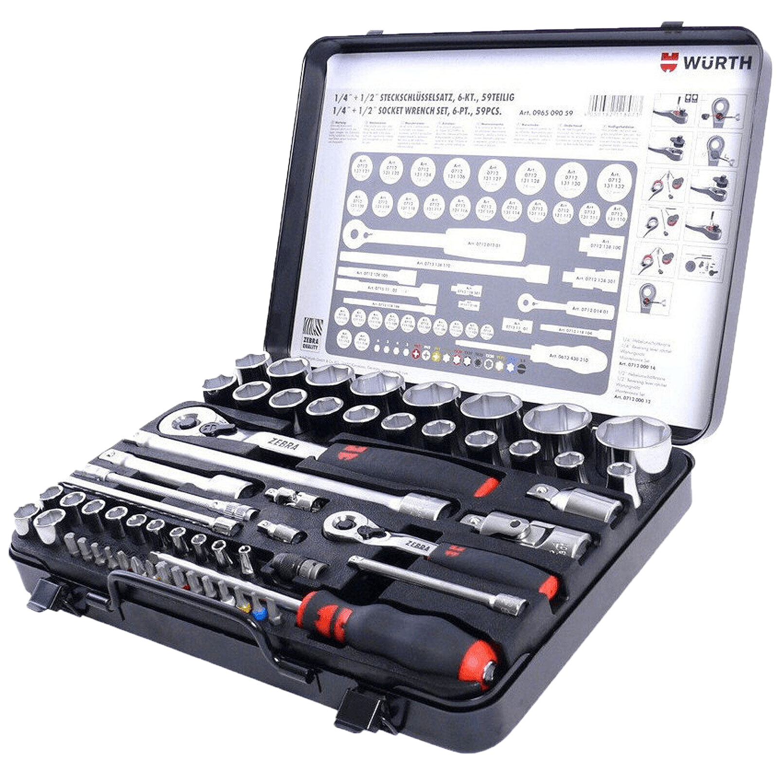 Set arpion me çelësa kokë, Würth, ZEBRA, 1/4-1/2", 59copë
